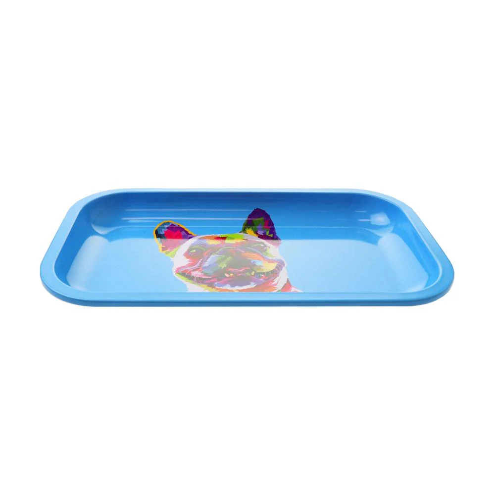 This is the perfect rolling tray for any French Bulldog lover! The blue background is the perfect backdrop for this adorable pup, and the tray itself is the perfect size for all your rolling needs.